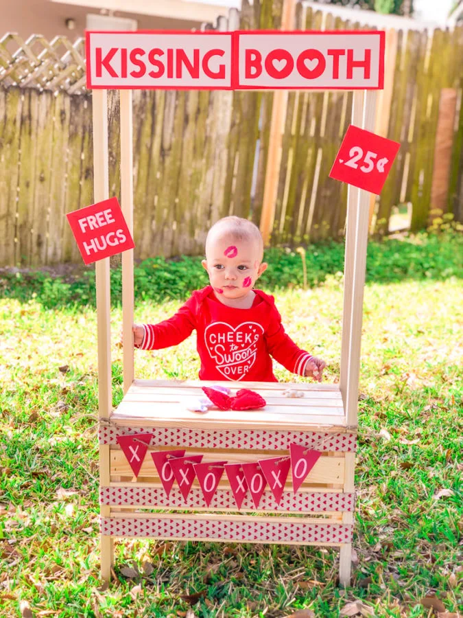 Then, I thought of a Valentine's Day photo I'd seen on Instagram of a baby with kisses all over her body. That photo inspired me to create this DIY Kissing Booth for my little one's Valentine's Day photo.